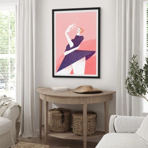 Plakat w czarnej ramie - Abstrakcyjna kobieca sylwetka w dynamicznej pozie - 50x70cm - Każdy krok tanecznym pas - Nowoczesna dekoracja ścienna do salonu i sypialni ARTTOR