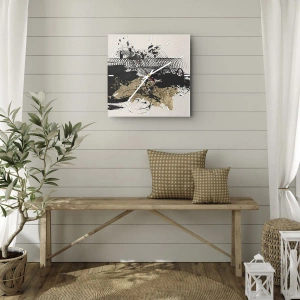 Zegar ścienny - Abstrakcyjny obraz w czerni i złocie z dynamicznymi liniami i strukturami - 30x30cm - Kompozycja z pasją - Nowoczesna dekoracja ścienna do salonu i sypialni ARTTOR