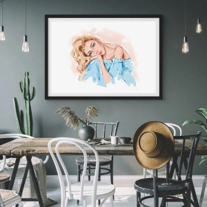 Plakat w czarnej ramie - Rozmarzona w błękicie - 30x40 cm