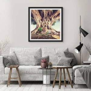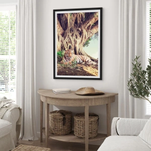 Plakat został wykonany w najwyższej jakości druku, co pozwala na uchwycenie wszystkich subtelnych detali – od tekstury korzeni, po miękką sierść tygrysa. Doskonała jakość obrazu sprawia, że plakat wydaje się niemal trójwymiarowy, nadając przestrzeni głębi i realizmu. W zestawie znajduje się czarna rama, która podkreśla elegancję kompozycji i gotowość do natychmiastowego zawieszenia.