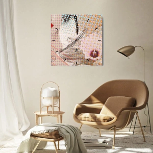Różowe, niebieskie i pomarańczowe akcenty nadają zegarowi wyrazistości i tworzą harmonijną, ale jednocześnie dynamiczną kompozycję. Geometria wzorów oraz intensywne kolory przyciągają wzrok, wprowadzając do wnętrza nowoczesny i odważny design. Zegar świetnie sprawdzi się w przestrzeniach w stylu retro, pop-art oraz nowoczesnych.