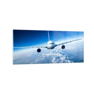 Obraz na szkle - Samolot lecący nad chmurami na tle błękitnego nieba - 120x50cm - Lecę bo chę - Nowoczesna dekoracja ścienna do salonu i sypialni ARTTOR