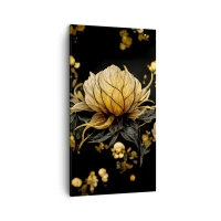 Obraz na płótnie - Złoty kwiat na ciemnym tle - 120x80cm - Subtelna kruchość - Nowoczesna dekoracja ścienna do salonu, kuchni i sypialni ARTTOR