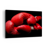 Obraz na płótnie - Czerwone rękawice bokserskie na czarnym tle - 100x70cm - Emocje walki za nami - Nowoczesna dekoracja ścienna do salonu, kuchni i sypialni ARTTOR