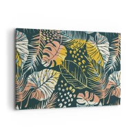 Obraz na płótnie - Kolorowe liście na ciemnym tle - 120x80cm - Liściasta fantazja - Nowoczesna dekoracja ścienna do salonu, kuchni i sypialni ARTTOR