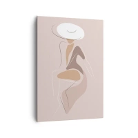 Obraz na płótnie - Minimalistyczna sylwetka kobiety w kapeluszu w beżowych odcieniach - 50x70cm - Damą być - Nowoczesna dekoracja ścienna do salonu, kuchni i sypialni ARTTOR