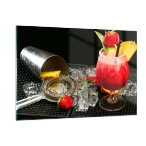 Obraz na szkle - Kolorowy drink z owocami i shakerem na lodzie - 120x80cm - Wyczarować smak - Nowoczesna dekoracja ścienna do salonu, kuchni i sypialni ARTTOR