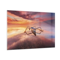 Obraz na szkle - Nastrojowa sceneria morza z drewnianymi palami - 100x70cm - Zamyślone jezioro - Nowoczesna dekoracja ścienna do salonu, kuchni i sypialni ARTTOR