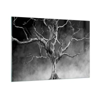 Obraz na szkle - Czarne drzewo na tle mgły - 100x70cm - Pierwotne i święte - Nowoczesna dekoracja ścienna do salonu, kuchni i sypialni ARTTOR