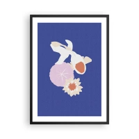Plakat w czarnej ramie - Ryba koi w otoczeniu kwiatów na intensywnym tle - 50x70cm - Kompozycja kwiatów i pąków - Nowoczesna dekoracja ścienna do salonu i sypialni ARTTOR