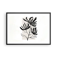 Plakat w czarnej ramie - Ciemny abstrakcyjny motyw liściowy na jasnym tle - 70x50cm - Kształty natury - Nowoczesna dekoracja ścienna do salonu i sypialni ARTTOR