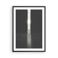 Plakat w czarnej ramie - Człowiek stojący w świetle szczeliny w ciemnym otoczeniu - 50x70cm - Krok do jasnej przyszłości - Nowoczesna dekoracja ścienna do salonu i sypialni ARTTOR
