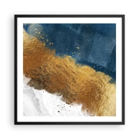 Plakat w czarnej ramie - Abstrakcyjna kompozycja w odcieniach złota, błękitu i bieli - 70x50cm - Barwy lata - Nowoczesna dekoracja ścienna do salonu i sypialni ARTTOR