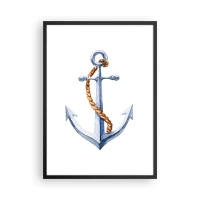 Plakat w czarnej ramie - Kotwica z liną w akwarelowym stylu - 50x70cm - Ahoj przygodo! - Nowoczesna dekoracja ścienna do salonu i sypialni ARTTOR