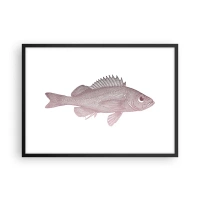 Plakat w czarnej ramie - Szczegółowa ilustracja ryby na białym tle - 70x50cm - Ryba wielkooka - Nowoczesna dekoracja ścienna do salonu i sypialni ARTTOR