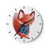 Zegar ścienny - Uroczy lisek w niebieskiej chuście na białym tle - 30x30cm - Ładnie mi w tym? - Nowoczesna dekoracja ścienna do salonu, kuchni i sypialni ARTTOR