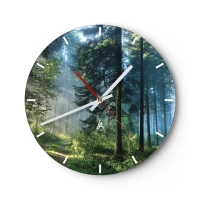 Zegar ścienny - Poranna mgła w lesie z promieniami słońca - 30x30cm - Rozpromieniony o poranku - Nowoczesna dekoracja ścienna do salonu, kuchni i sypialni ARTTOR