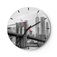 Zegar ścienny - Brookliński most na tle panoramy miasta w czerni i bieli - 30x30cm - Nowojorskie klimaty - Nowoczesna dekoracja ścienna do salonu, kuchni i sypialni ARTTOR