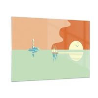Obraz na szkle - Minimalistyczny zachód słońca z żaglówką i latarnią - 100x70cm - Morski pejzaż idealny - Nowoczesna dekoracja ścienna do salonu, kuchni i sypialni ARTTOR