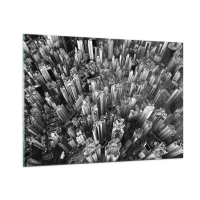 Obraz na szkle - Czarno-biała panorama miasta z lotu ptaka - 100x70cm - Wciąż wyżej i wyżej - Nowoczesna dekoracja ścienna do salonu, kuchni i sypialni ARTTOR