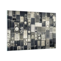 Obraz na szkle - Kompozycja retro głośników w odcieniach szarości - 100x70cm - I wszystko gra - Nowoczesna dekoracja ścienna do salonu, kuchni i sypialni ARTTOR