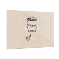 Obraz na szkle - Rysunek stylizowanego mężczyzny z okularami, wąsem i fajką - 100x70cm - Prawdziwy mężczyzna? - Nowoczesna dekoracja ścienna do salonu, kuchni i sypialni ARTTOR