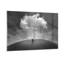 Obraz na szkle - Osoba patrzy na drabinę prowadzącą do chmury - 120x80cm - Wszystko możliwe - Nowoczesna dekoracja ścienna do salonu, kuchni i sypialni ARTTOR