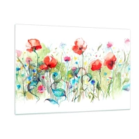 Obraz na szkle - Kolorowe maki i dzikie kwiaty w stylu akwarelowym - 120x80cm - Kwitnąca majem łąka - Nowoczesna dekoracja ścienna do salonu, kuchni i sypialni ARTTOR