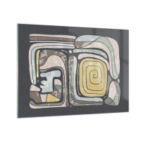 Obraz na szkle - Geometryczna abstrakcja w kolorach ziemi na czarnym tle - 70x50cm - Abstrakcja w duchu prekolumbijskim - Nowoczesna dekoracja ścienna do salonu i sypialni ARTTOR