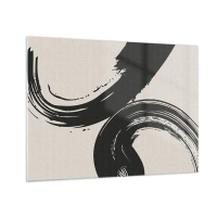 Obraz na szkle - Czarne, dynamiczne pociągnięcia pędzla w stylu kaligrafii na jasnym tle - 70x50cm - Zamaszyście i koliście - Nowoczesna dekoracja ścienna do salonu i sypialni ARTTOR