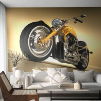 Fototapeta Standard Eco - Żółty chopper na tle gradientowego złotego tła - 100x70cm - Marzenie o sile i prędkości - Nowoczesna dekoracja ścienna do salonu i sypialni ARTTOR
