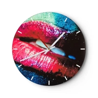 Zegar ścienny - Zbliżenie kolorowych, błyszczących ust na artystycznym tle - 30x30cm - Zmysłowe i niepokojące - Nowoczesna dekoracja ścienna do salonu i sypialni ARTTOR