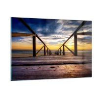 Obraz na szkle - Pomost prowadzący na plażę o zachodzie słońca - 120x80cm - Prosto na cichą plażę o zachodzie słońca - Nowoczesna dekoracja ścienna do salonu, kuchni i sypialni ARTTOR