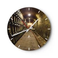 Zegar ścienny - Piwnica z drewnianymi beczkami na wino ułożonymi w rzędach - 30x30cm - Dobrze jest poleżeć sobie - Nowoczesna dekoracja ścienna do salonu i sypialni ARTTOR