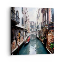 Plakat - Pejzaż wenecki z gondolą i mostkiem - 60x60 cm