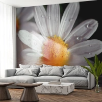 Fototapeta Standard Eco - Biała stokrotka z kroplami rosy odbijająca się w wodzie - 100x70cm - Wschodzące słońce margaretki - Nowoczesna dekoracja ścienna do salonu i sypialni ARTTOR