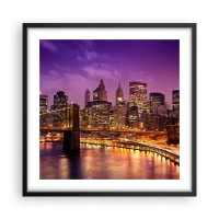 Plakat w czarnej ramie - Fioletowo-złoty Manhathann - 50x50 cm