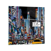 Zegar ścienny - Tętniące życiem miasto z kolorowymi reklamami i żółtymi taksówkami - 30x30cm - Komiksowa wielka noc - Nowoczesna dekoracja ścienna do salonu i sypialni ARTTOR