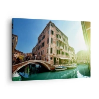 Obraz na płótnie - Kanał wodny otoczony zabytkowymi kamienicami w słońcu - 50x70cm - Wenecja - Amore Mio - Nowoczesna dekoracja ścienna do salonu, kuchni i sypialni ARTTOR