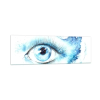 Obraz na szkle - Artystyczna akwarela oka z dynamiczną falą - 160x50cm - Zanurzyć się w błękicie spojrzenia - Nowoczesna dekoracja ścienna do salonu i sypialni ARTTOR
