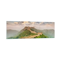 Obraz na szkle - Wielki Mur Chiński oświetlony promieniami słońca w malowniczym krajobrazie - 160x50cm - Nieprzemijająca wielkość - Nowoczesna dekoracja ścienna do salonu i sypialni ARTTOR