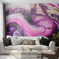 Fototapeta Standard Eco - Abstrakcyjna kompozycja fioletu i złota - 100x70cm - Chwila za kulisami - Nowoczesna dekoracja ścienna do salonu i sypialni ARTTOR