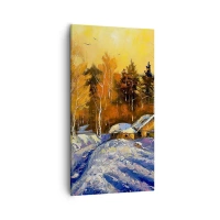 Fototapeta Premium Canvas - Zimowa impresja w słońcu - Krajobraz, Zima, Górska Chata - 150x105 cm