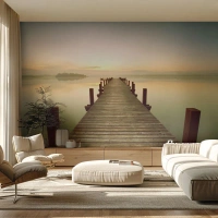 Fototapeta Samoprzylepna Deluxe Sticker - Przedświt, świtanie, światło - Krajobraz, Jezioro, Drewniany Pomost - 200x140 cm