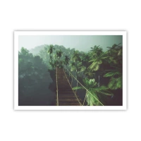 Plakat - Wiszący most w tropikalnym lesie otoczonym mgłą - 100x70cm - Nad kipielą zieleni - Nowoczesna dekoracja ścienna do salonu i sypialni ARTTOR