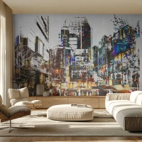 Fototapeta Samoprzylepna Deluxe Sticker - Miasto migotliwe - Miasto, Architektura, Grafika - 200x140 cm