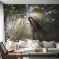 Fototapeta Standard Eco - Słoń w promieniach słońca w tropikalnym lesie - 100x70cm - Pod szczęśliwą gwiazdą - Nowoczesna dekoracja ścienna do salonu i sypialni ARTTOR
