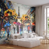 Fototapeta Standard Eco - Jesienny Paryż w deszczu z kolorowymi parasolami - 100x70cm - Jesienią szczególnie piękny - Nowoczesna dekoracja ścienna do salonu i sypialni ARTTOR