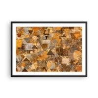 Plakat w czarnej ramie - Abstrakcyjne geometryczne wzory w odcieniach złota - 70x50cm - Świat ujęty w formę - Nowoczesna dekoracja ścienna do salonu i sypialni ARTTOR