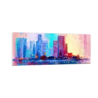 Obraz na szkle - Kolorowa panorama miasta w akwarelowym stylu - 140x50cm - Skąpane w barwach - Nowoczesna dekoracja ścienna do salonu i sypialni ARTTOR
